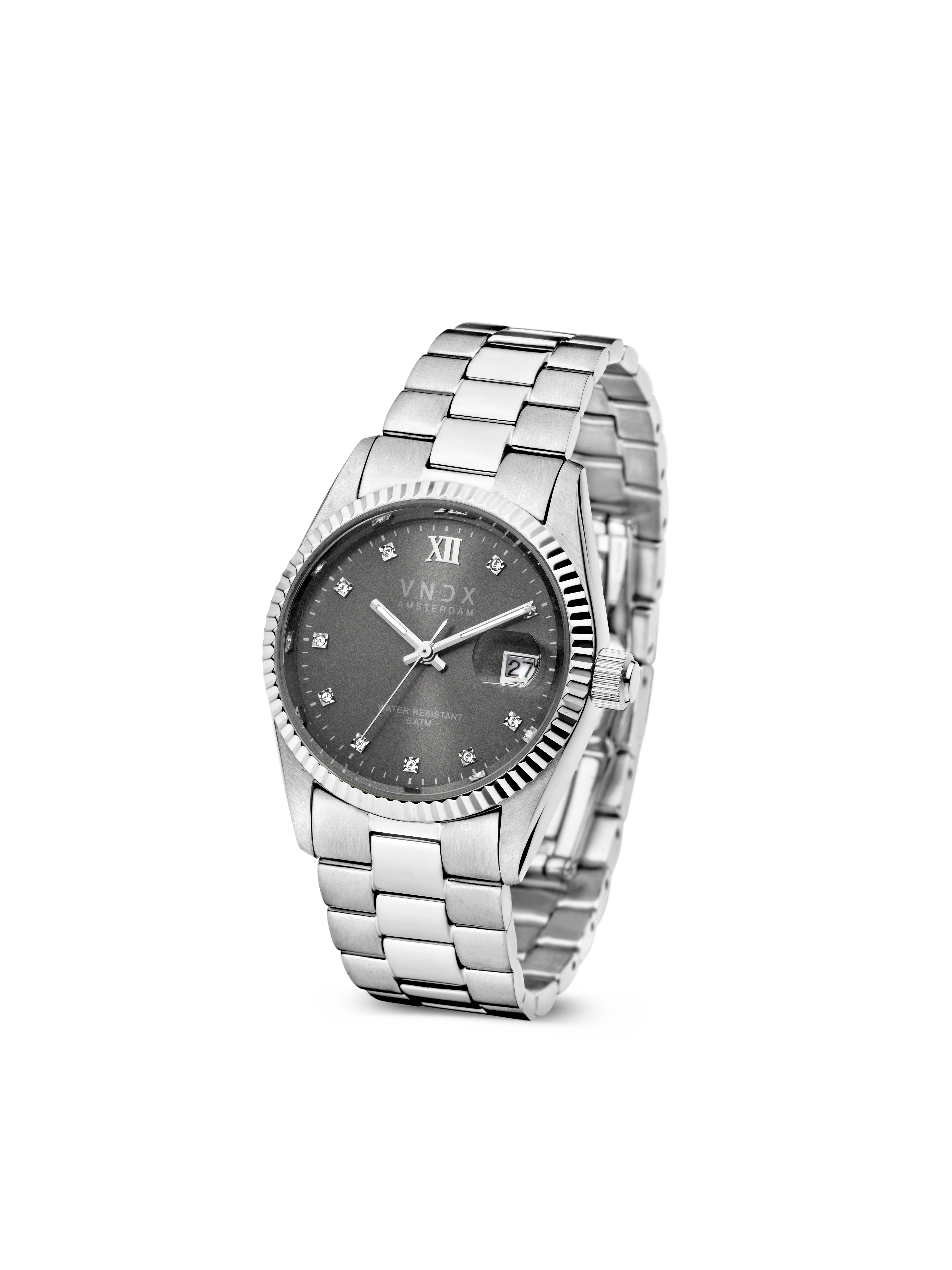 Haar elegante design zorgt ervoor dat je Dare Devil fungeert als een eyecatcher bij je outfit. Wanneer je haar van dichterbij ontdekt, zie je; “The Devil in the detail.” Haar sprankelende grijze wijzerplaat is voorzien van een index met Swarovski steentjes.