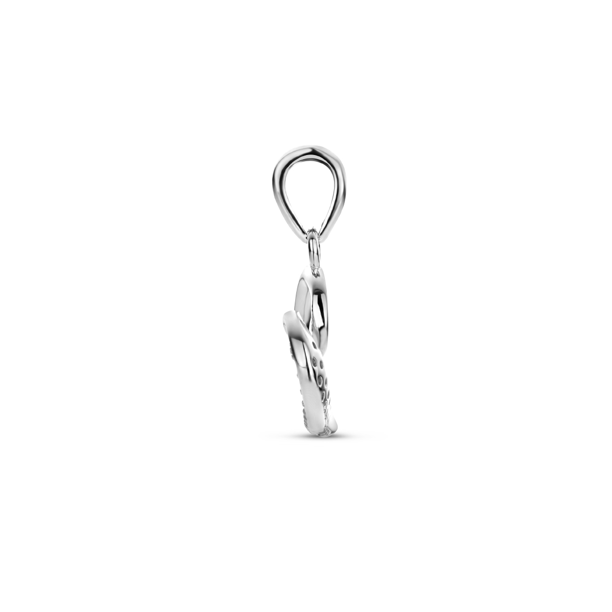 Gerhodineerd 925 zilveren hanger uitgevoerd in de vorm van een hartje met zirkonia. De hanger heeft een totale hoogte van 2.0cm en een breedte van 10mm.