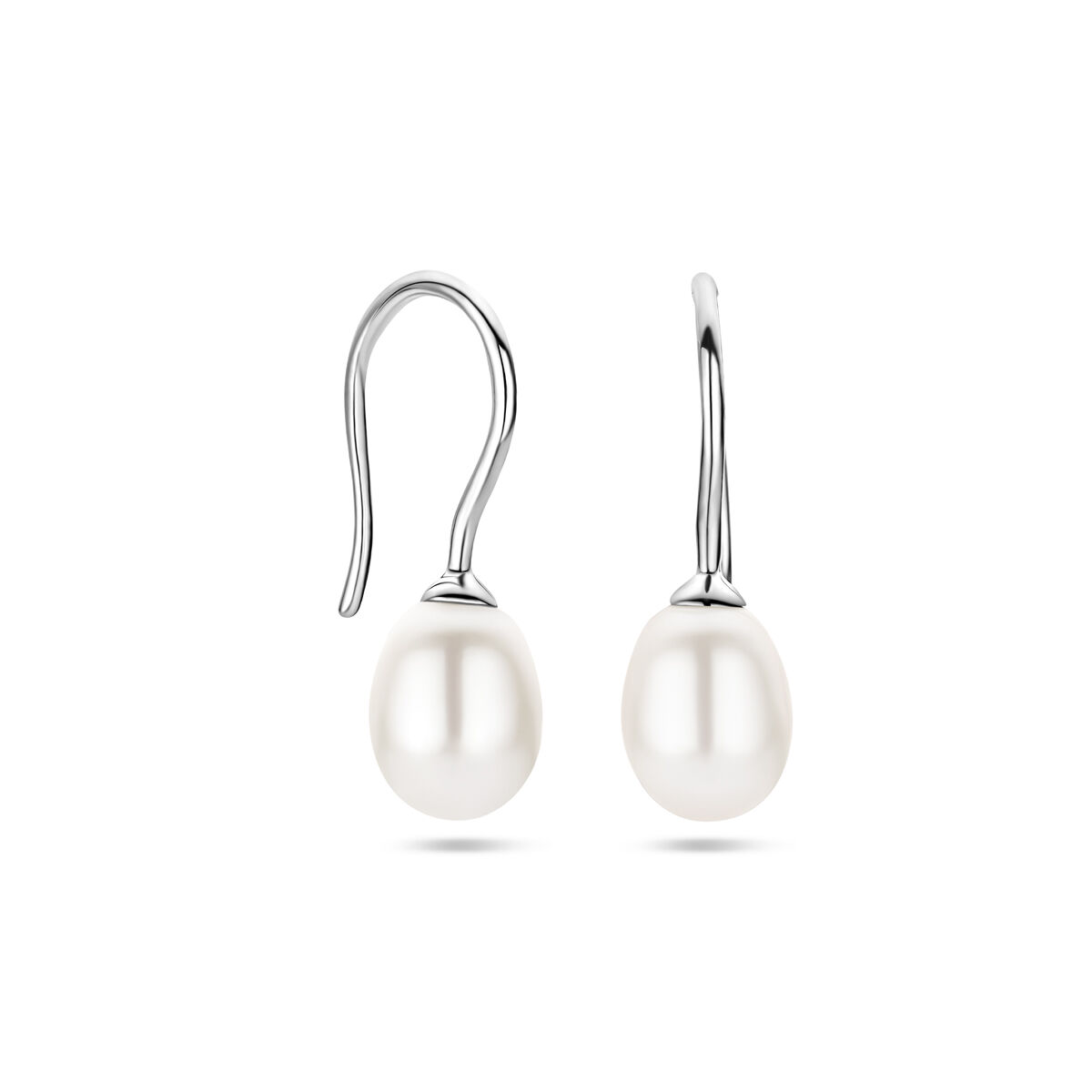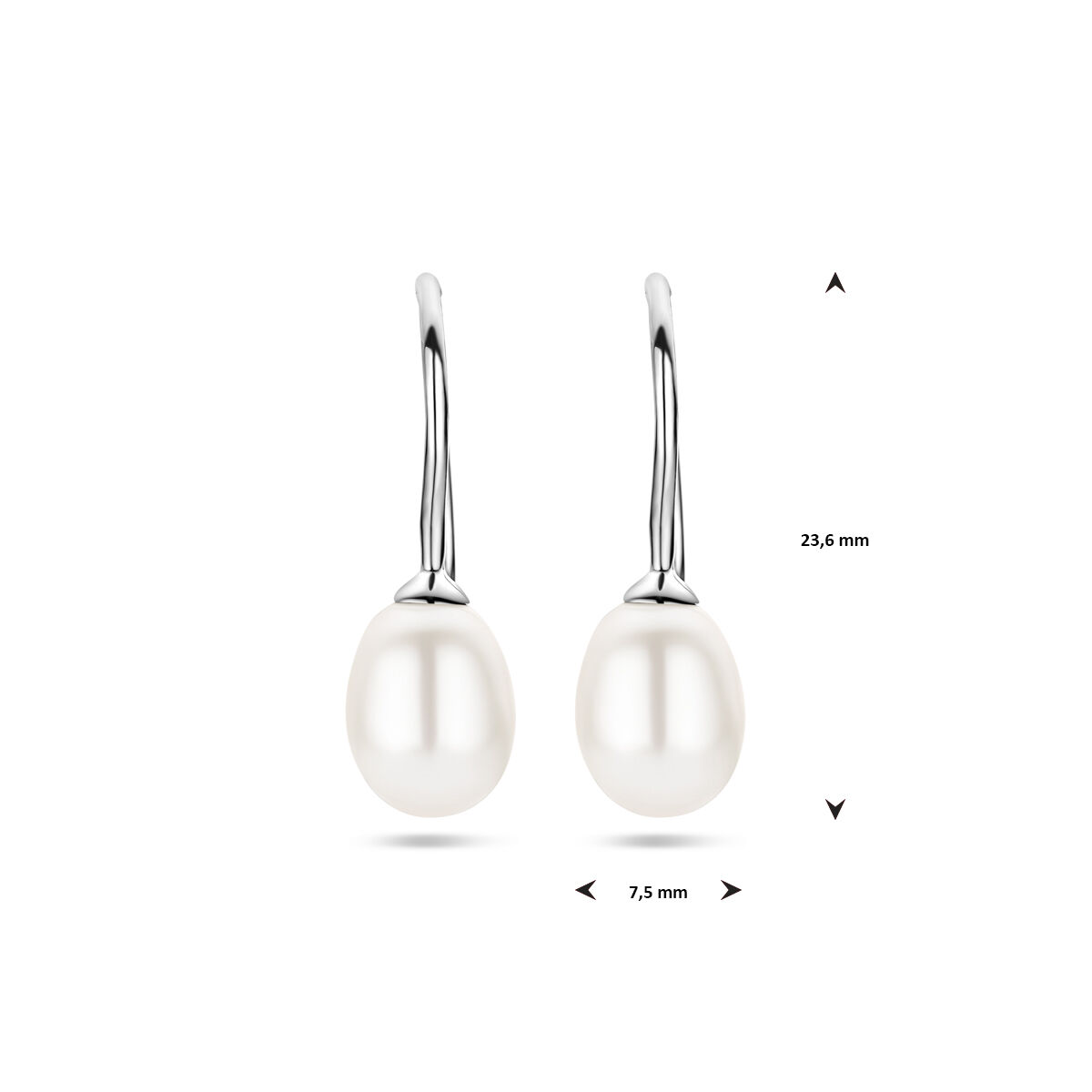 Gerhodineerd zilveren oorhangers met een zoetwaterparel.