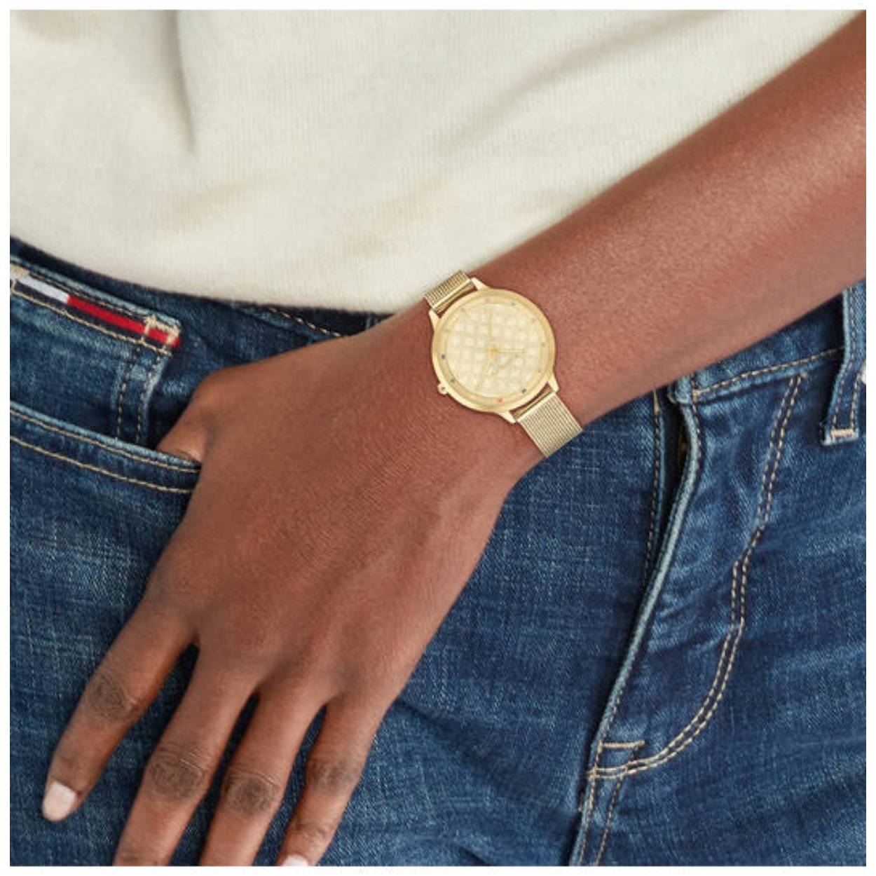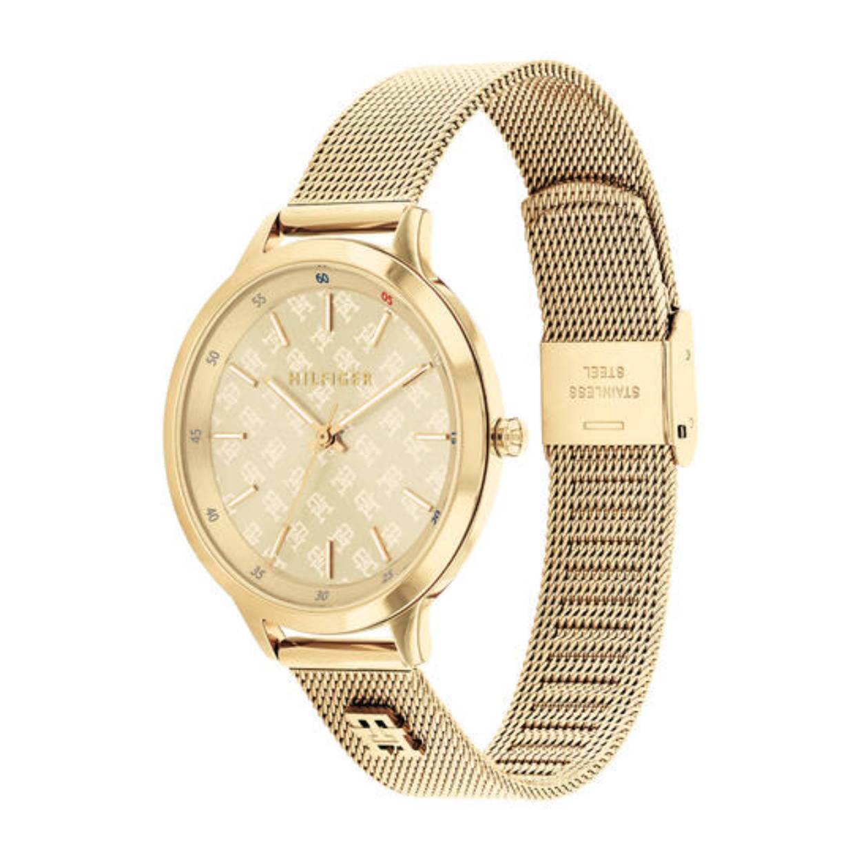 Chique Tommy Hilfiger dames horloge. Goudkleurig met Milanese band